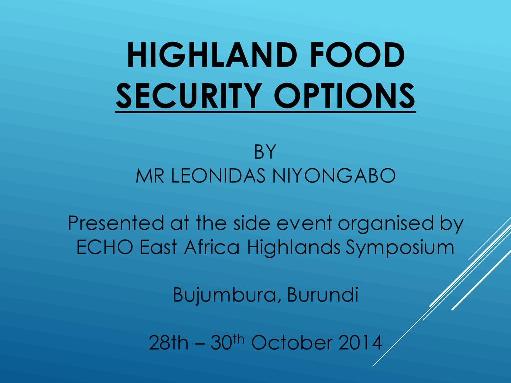INTEGRATED FOOD SECURITY AND SUSTAINABLE LIVELIHOODS