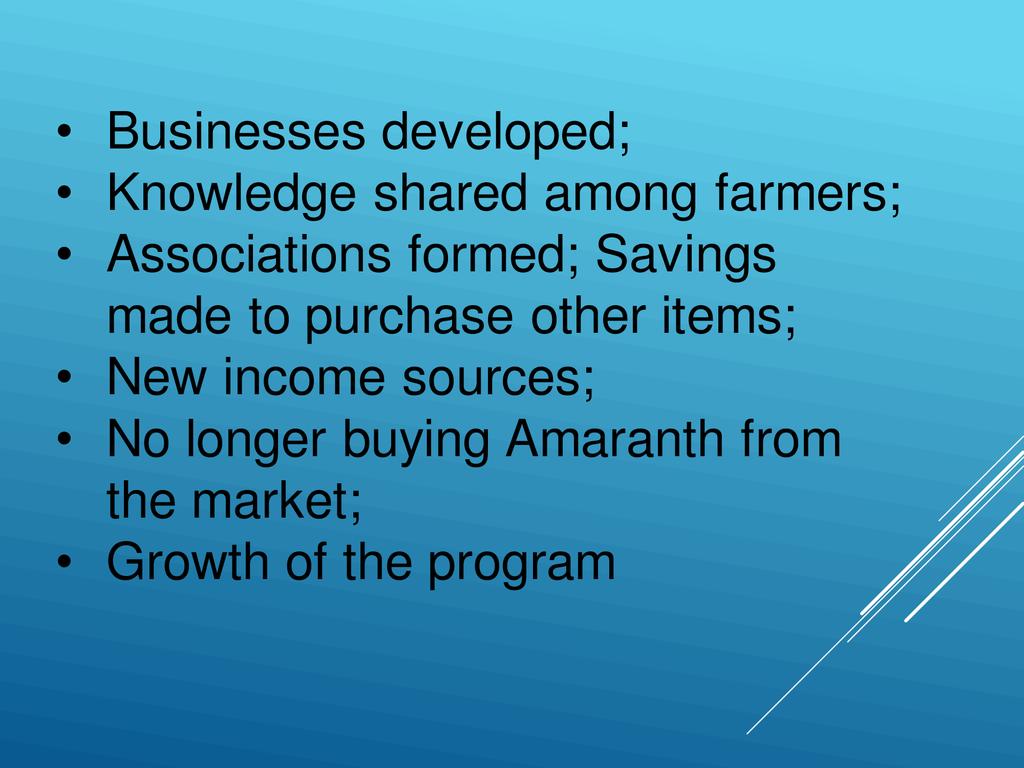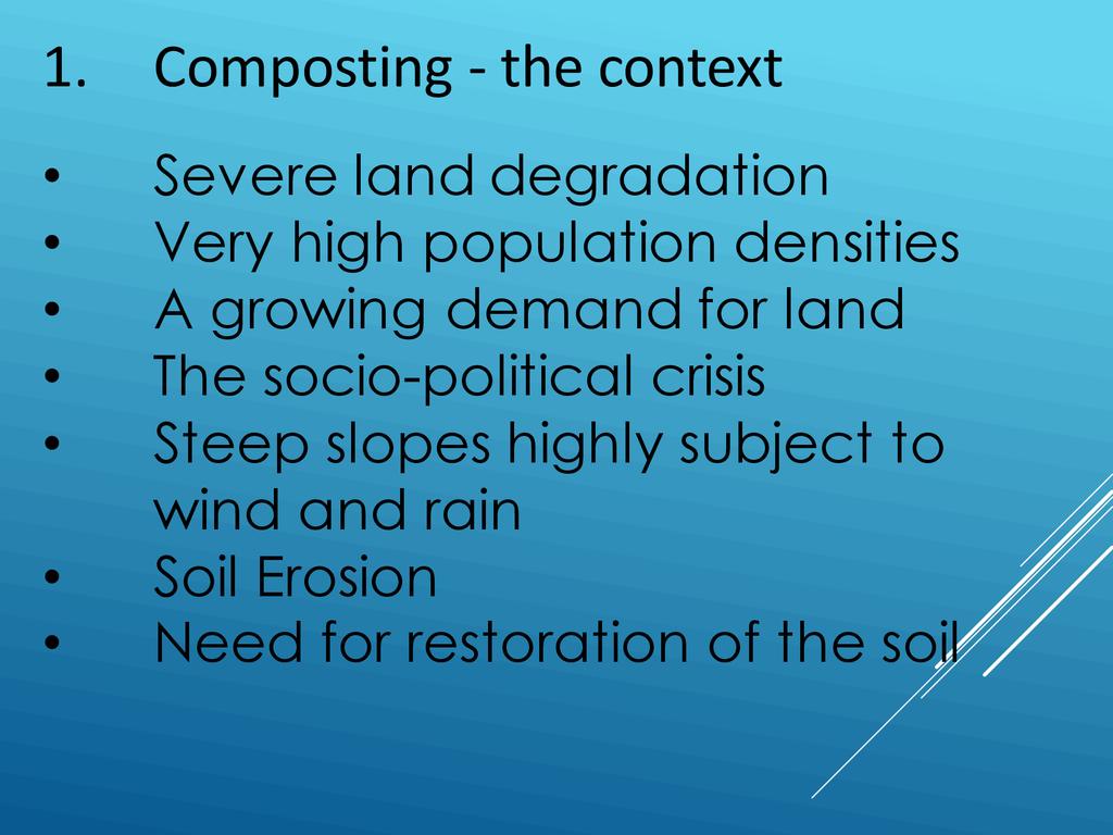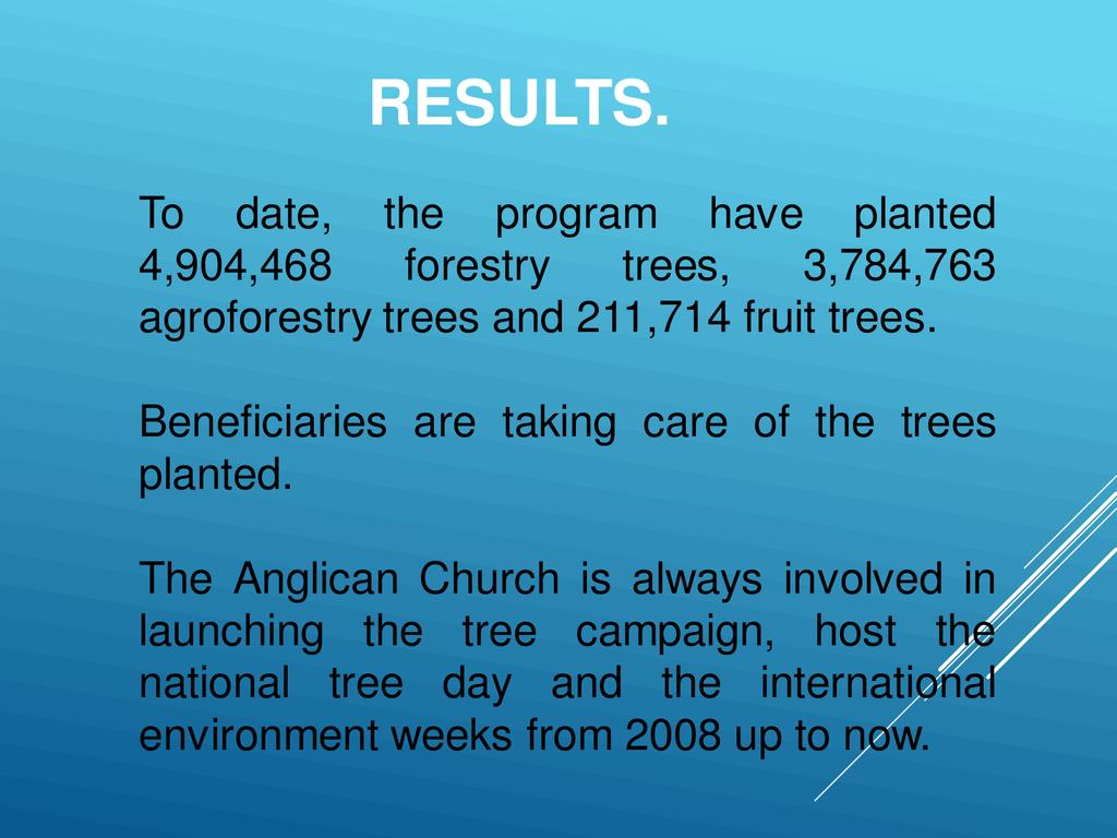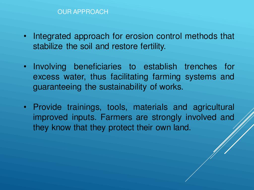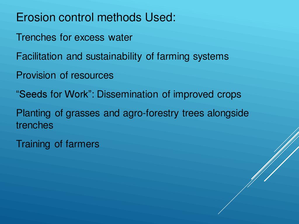 • Conservation and management of land and environmental resources through reforestation and reduced soil erosion.