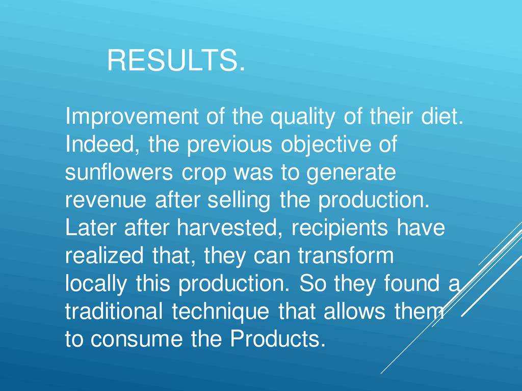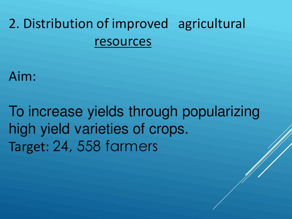 To contribute to the reestablishment of sustainable livelihoods and improved health