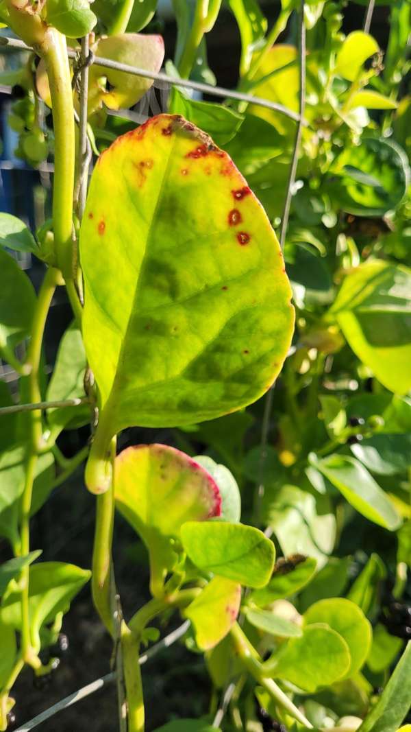 Figure 19. Circular spots with purple boarders indicating C. beticola infection. Source: Jason Weigner