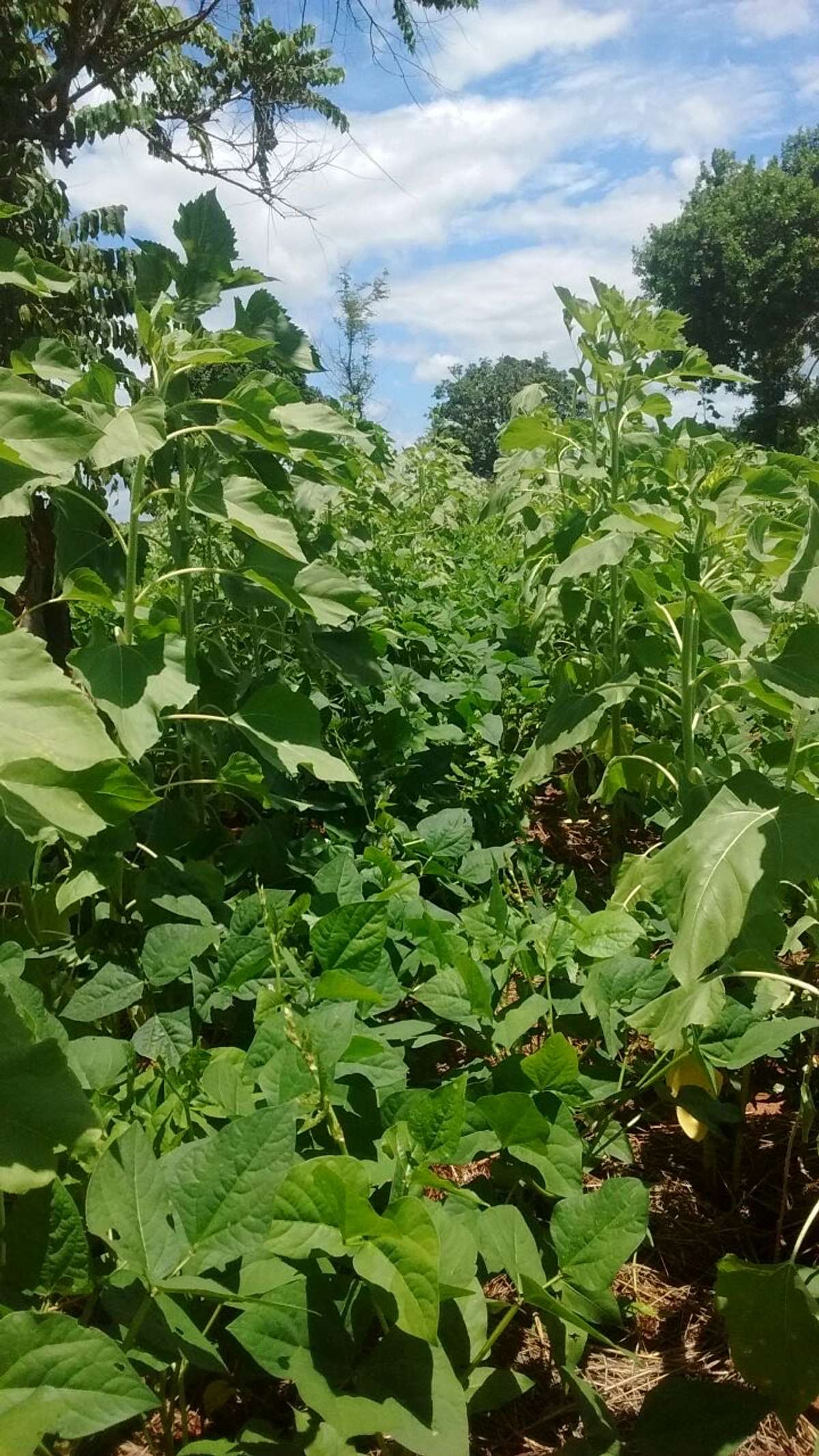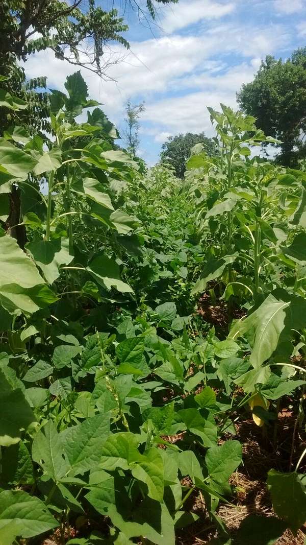 Figure 13. Intercrop of sunflower and cowpea (pigeon pea not in view). Source: Tim Tanner