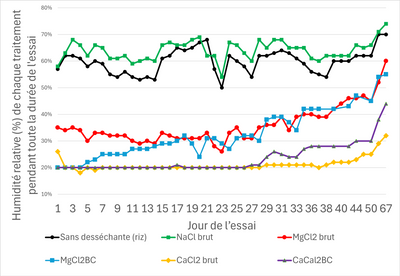 Figure 10. Humidité relative (%) de chaque traitement pendant toute la durée de l'essai.