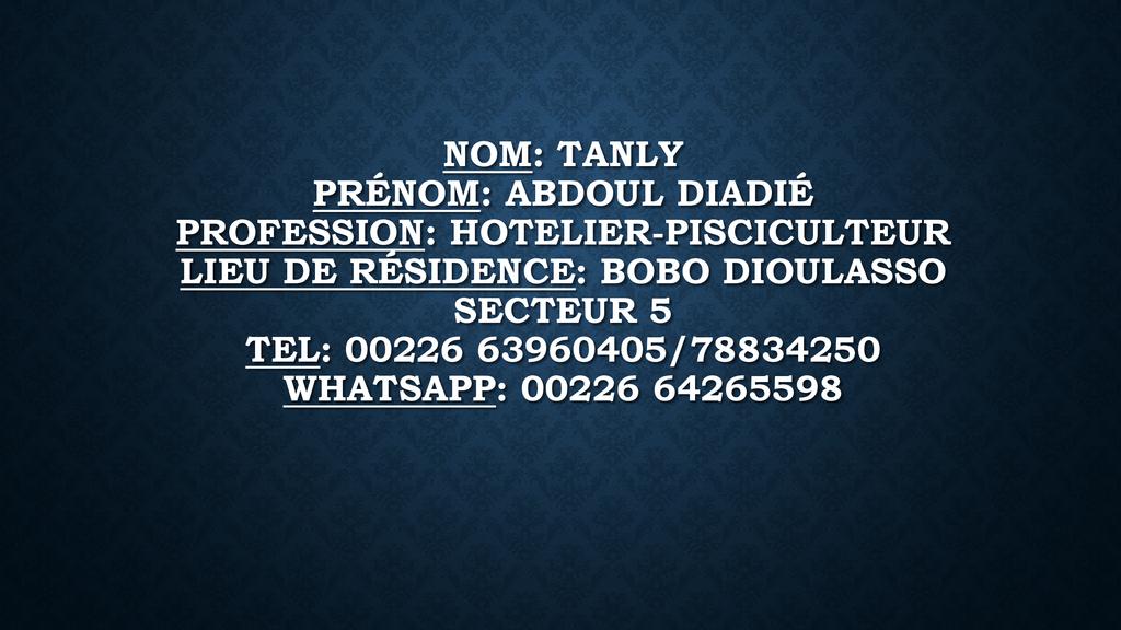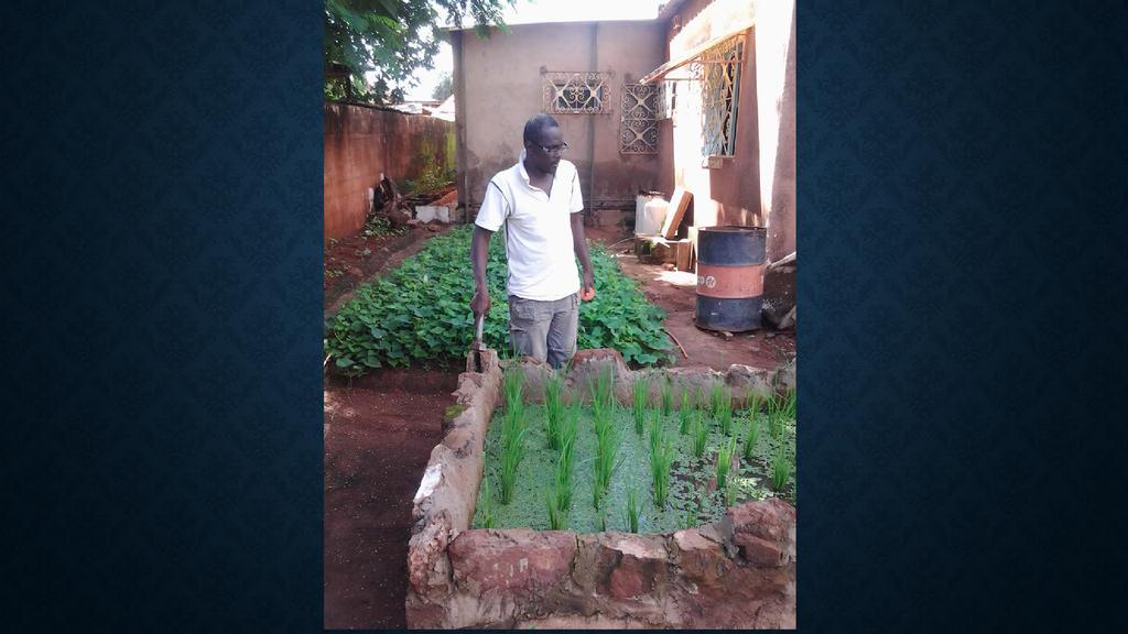 Monsieur TANLY est hôtelier de formation. Il est entrain de développer une méthode qui combine riziculture, pisciculture et cultures maraîchères à Bobo-Dioulasso et à Bama. Une telle méthode, si elle est répandue, pourrait contribuer considérablement à la sécurité alimentaire en ce sens que non seulement elle met à la disposition des populations le riz mais aussi du poisson.