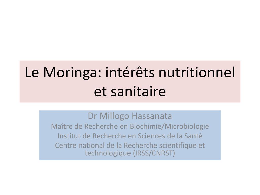 Dr MILLOGO Hassanata est maitre de recherche à l’institut de recherche en science de la santé. Elle est biochimiste et docteur en microbiologie. Elle est l’une des spécialistes en Moringa au Burkina Faso.