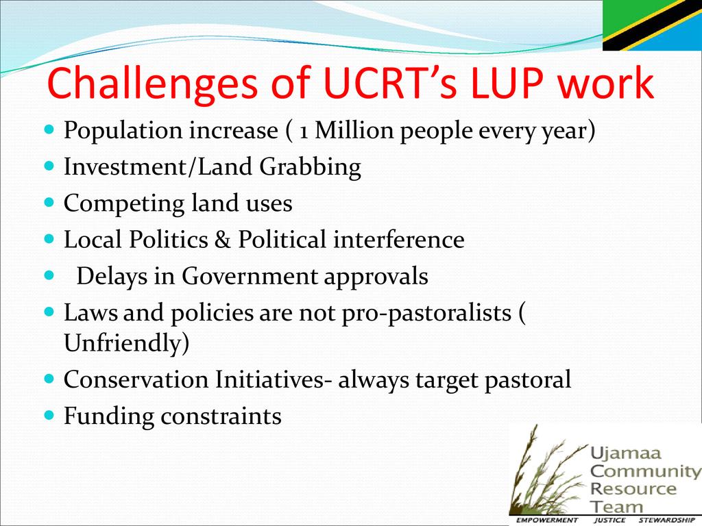 Biographical Information: Edward Lekaita is currently working as Legal Advisor and Head of Advocacy with Ujamaa Community Resource Team- UCRT an NGOs based in Arusha- Tanzania. He is a Lawyer and practicing Advocate of High Court of Tanzania with Bachelor Degree in Law from University of Tumaini- Iringa, Post Graduate Diploma (PGD)) in Legal Practice Law School of Tanzania- University of Dar Es Salaam, Tanzania, and Masters Degree (LL.M) in International Trade - University of Stellenbosch- South Africa. For 6 years he has working experience on land use, has been involved in training on natural resources laws, and lobbying & advocacy with UCRT. For 10 years he has served as a lawyer and general practitioner and for 4 years as practicing Lawyer/Advocate.