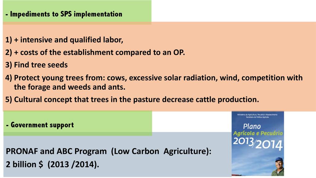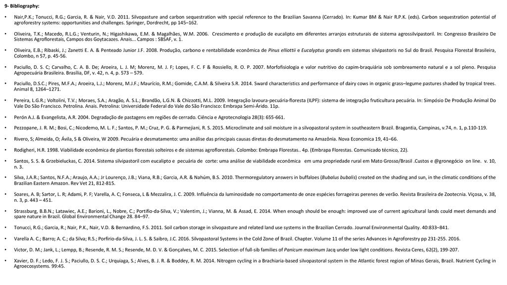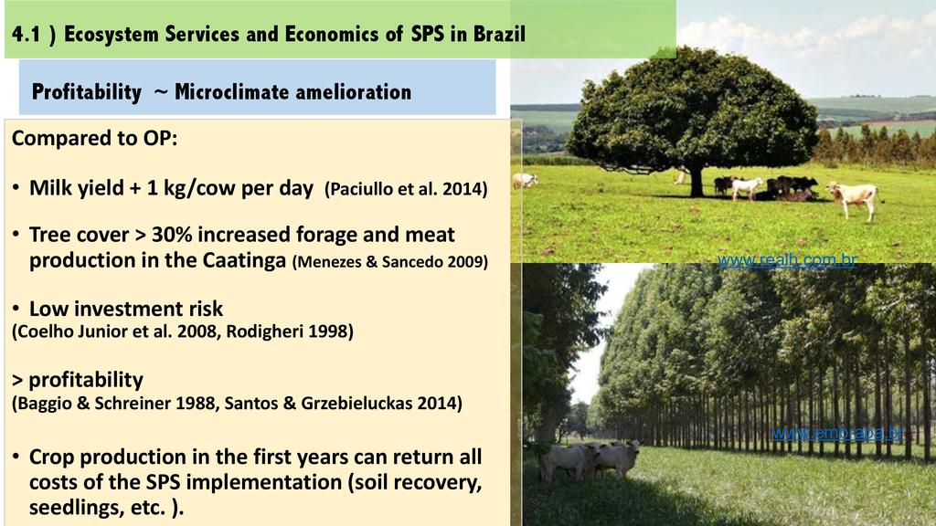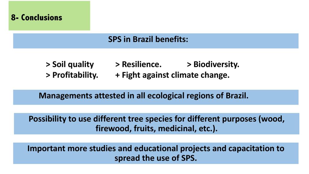 This presentation will focus on the potential use of silvopastoral systems (SPS) in Brazil to fight the increasing of land degradation and will describe the specific characteristics of SPS in the different ecological regions of the country. We will also consider management aspects, ecosystems services, economic potential, and the impediments for the use of SPS throughout Brazil.