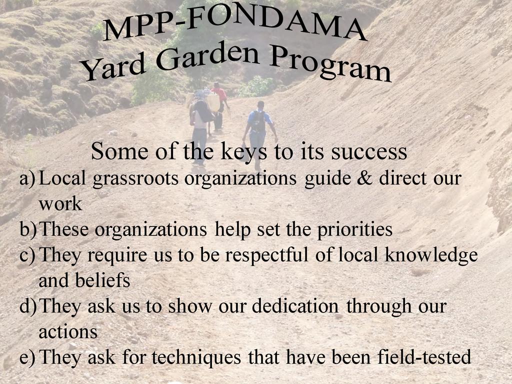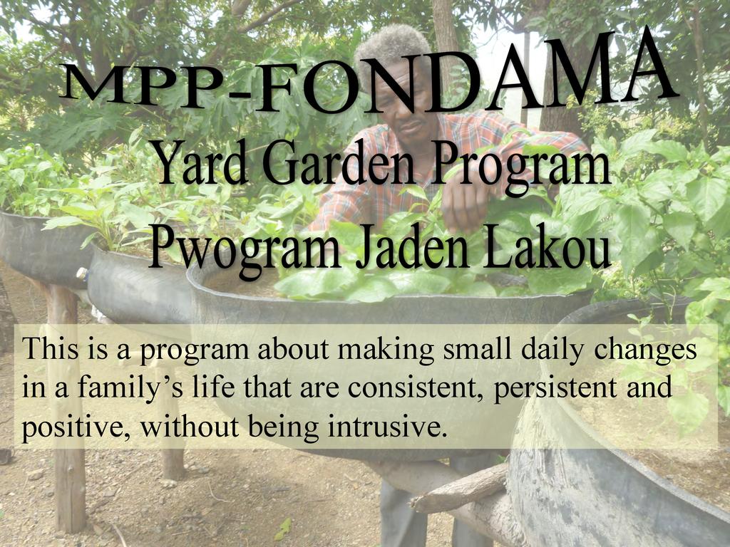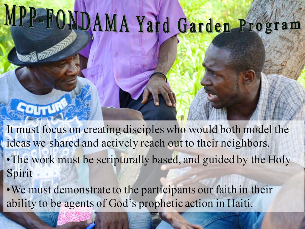 Mark’s presentation will demonstrate how the Haiti-based FONDAMA Yard Garden program helps people make small, daily changes that are consistent, persistent, and positive without being intrusive.  We will look at examples of how the program helps people recognize the power they have to learn to use what they have at hand to increase food production.  We will also see examples of individuals and grass-roots organizations committing themselves to share knowledge with the communities in which they live and serve. Together we will explore how people can learn to celebrate small successes while praying and struggling for big ones.