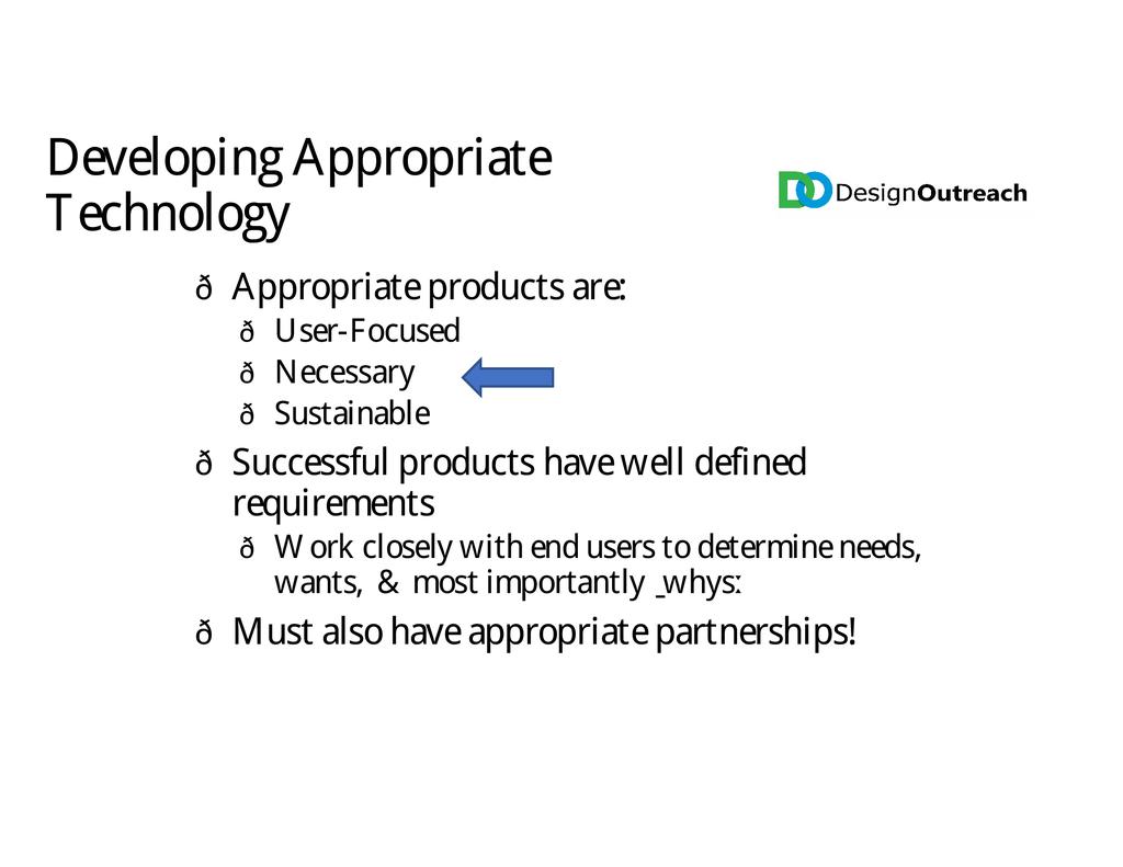 Session : With 90% of the world’s engineering focused on 10% of the population, a significant opportunity exists to serve the most vulnerable and marginalized people in developing countries. Many attempts have been made to develop so-called appropriate technology, with some success, and much failure. This talk will cover the Design Outreach (DO) appropriate technology design process as well as lessons learned and best practices. Included are aspects of the entrepreneurial mindset, human-centered design, as well as political, cultural, and economic factors that greatly affect the ability of a solution to reach scale.