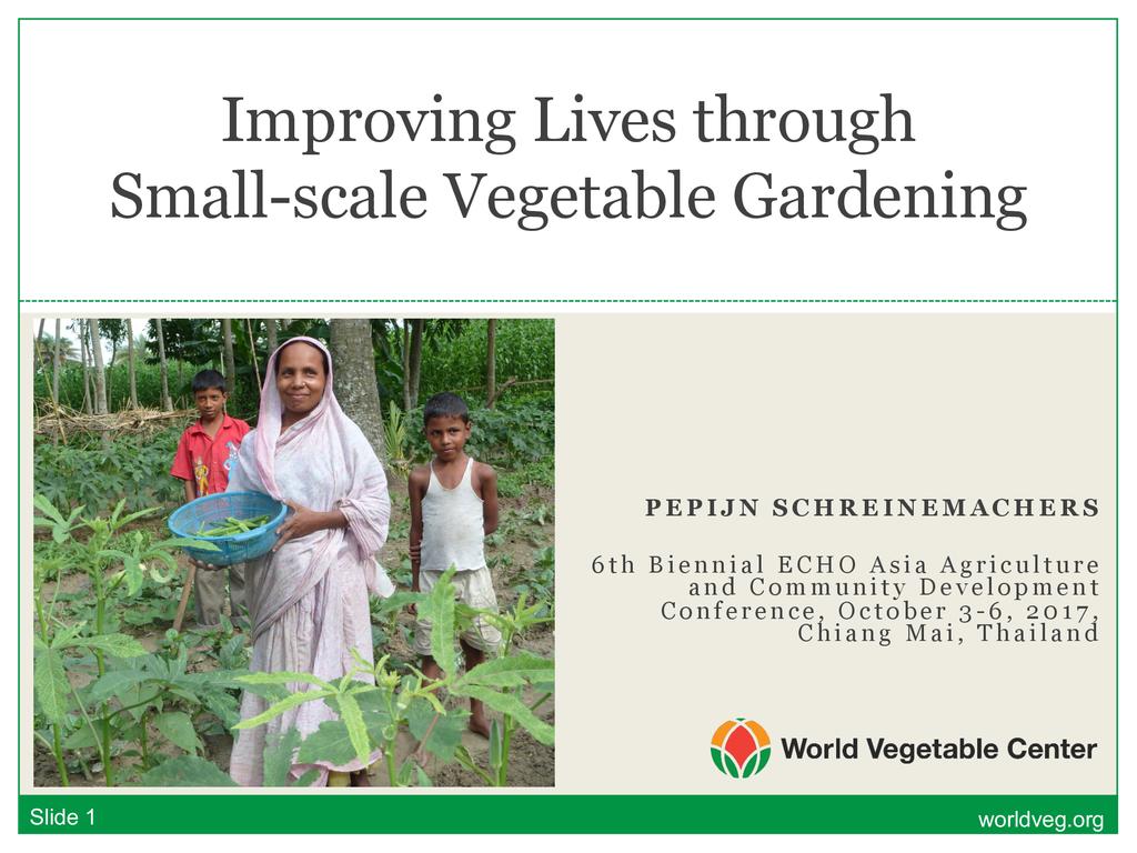 Through this session, Pepijn will share some of the experiences of the World Vegetable Center in home gardening for better, healthier lives.