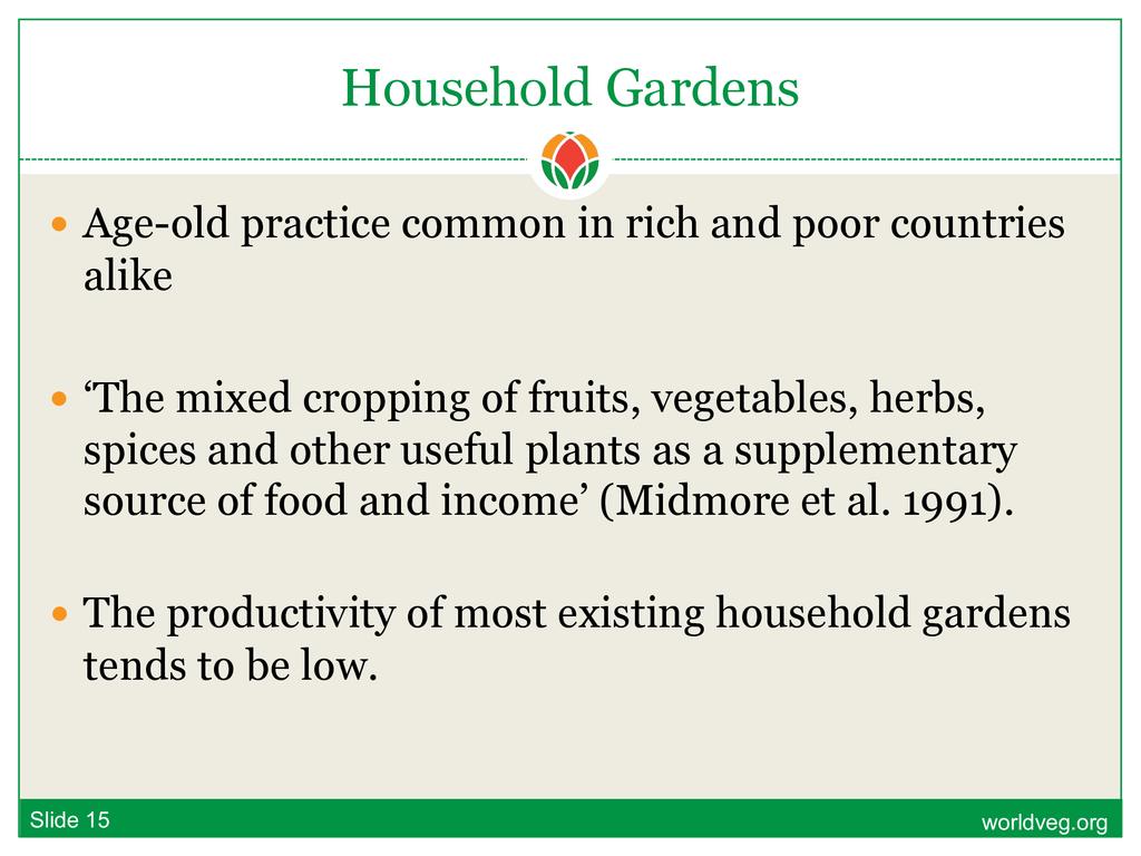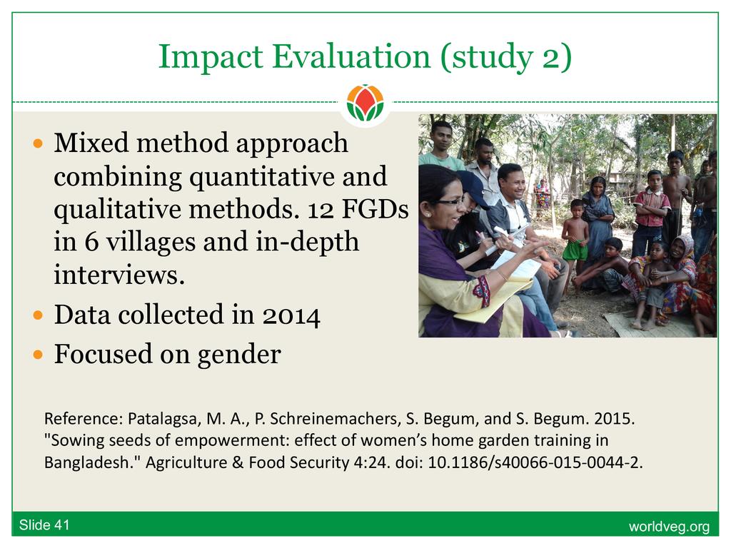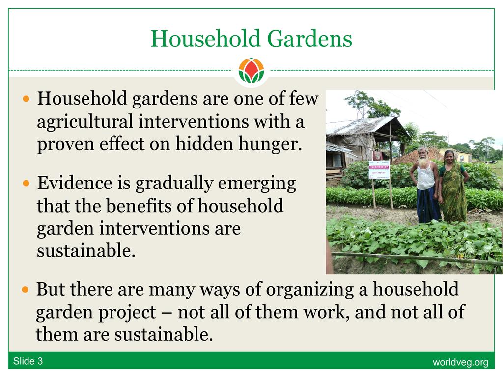 Home garden interventions are one of few agricultural interventions with a proven effect on nutritional outcomes and potentially contribute to 8 of the 17 Sustainable Development Goals. Despite a recent surge in interest, there remains a lack of knowledge about the most effective ways to implement home garden interventions.