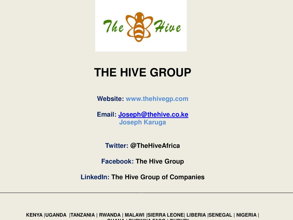 Biographical information: Kelvin Odoobo is Managing Director - East Africa at The Hive Group. He has over 10 years of experience in promoting improved farming technologies for small scale farmers and supporting them to ensure that success is achieved. He has previously worked as an Agronomist in Balton Uganda and founded the Agriculture Department in Balton Rwanda where he served as Agriculture Manager. He has worked with farmers, NGOs, arms of governments, development organizations and private investors in all 5 East African countries. He holds a Bachelor's of Science Degree in Agriculture from Makerere University, Kampala, Uganda.