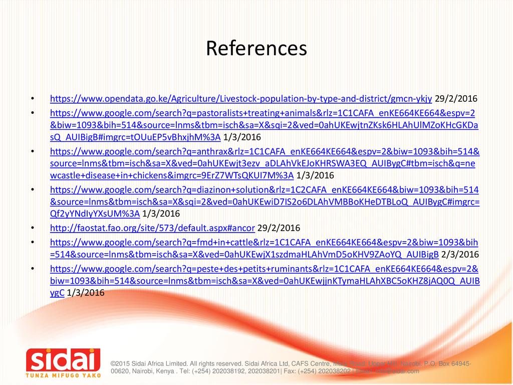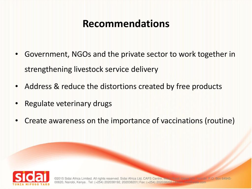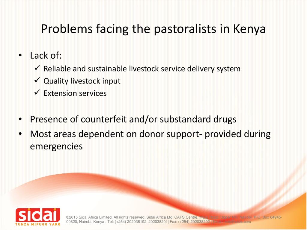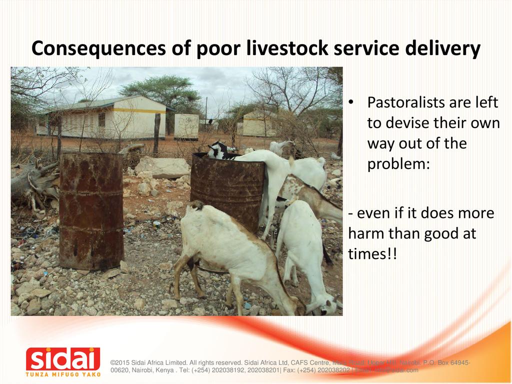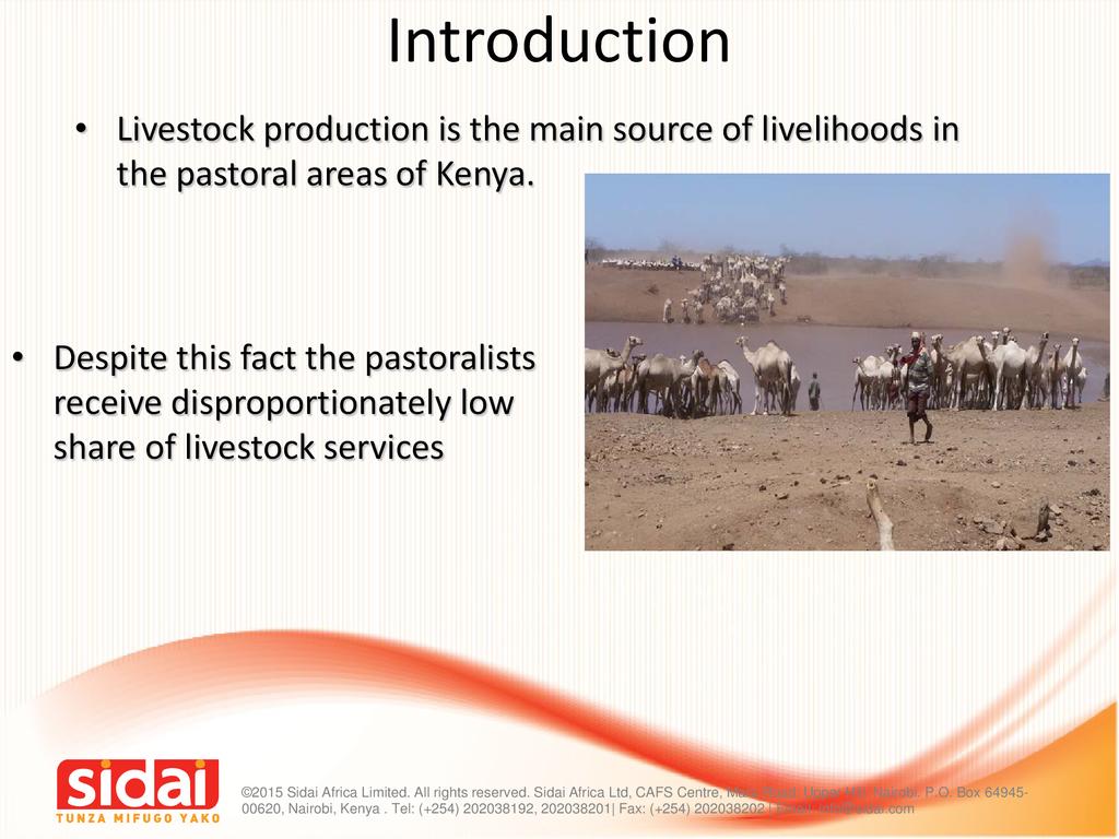 Session: The pastoral areas of Kenya are characterised by poor access to quality livestock services. Consequently the pastoralists are forced to purchase sub-standard and/or counterfeit veterinary drugs - often from unqualified people - to meet their animal health needs. They also treat their livestock by themselves due to the shortage of animal health professionals in the area. These factors lead to poor animal health management resulting in substantial livestock losses and expose the consumers to public health risks. It is in response to these gaps that Sidai, a social enterprise, was started in 2011. The company has set up a national network of over 100 branded franchised Livestock Service Centres across Kenya with the aim of delivering quality products and services to livestock keepers through a sustainable business model. A total of 48 such centres are providing livestock services in the pastoral areas of Kenya.