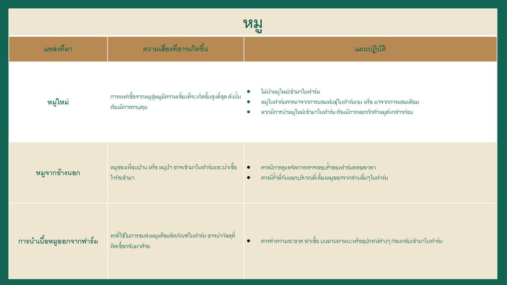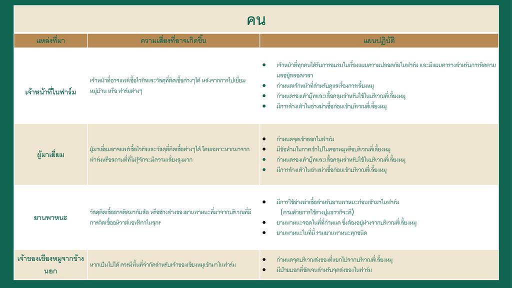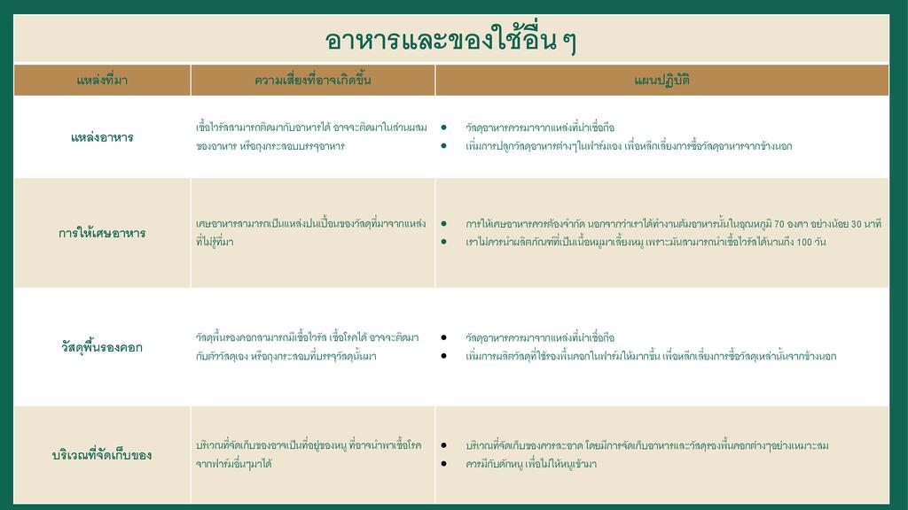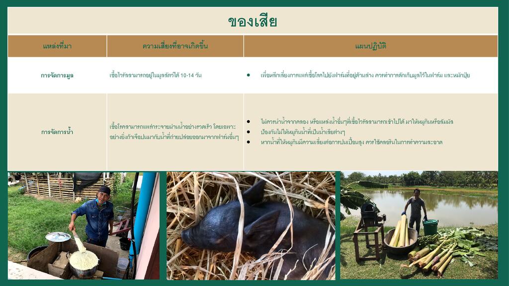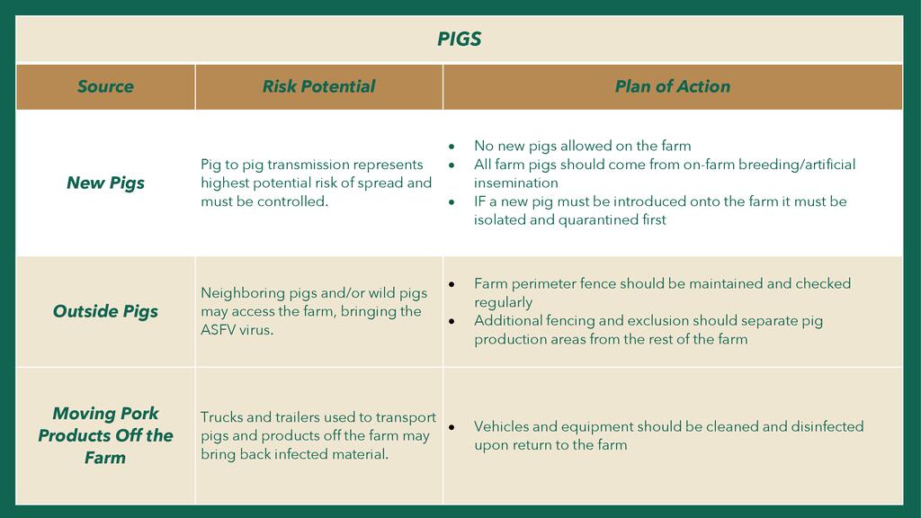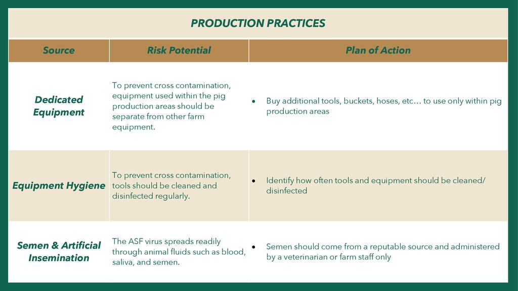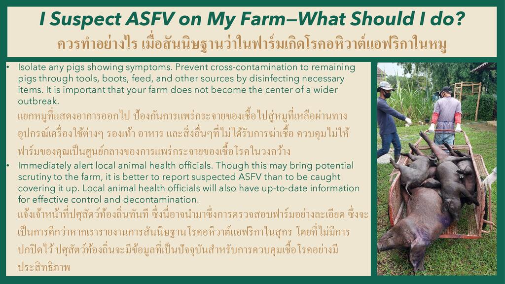 This presentation helps to help prevent the spread of the African Swine Fever Virus and other illnesses that can impact livestock. Good planning and consistent execution of biosecurity measures can help reduce the risk to livelihoods dependent on livestock.