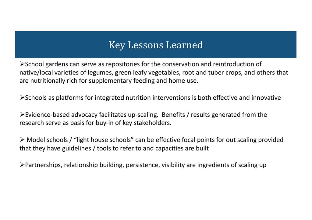 Upscaling the Integrated School Nutrition Model: Leveraging the Nutrition Contributions of Gardens