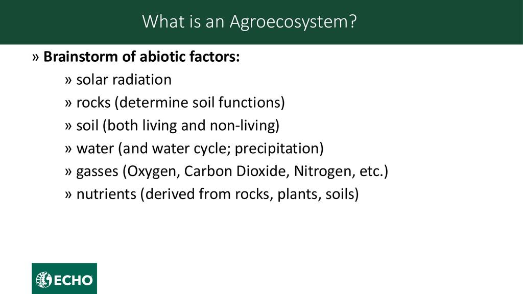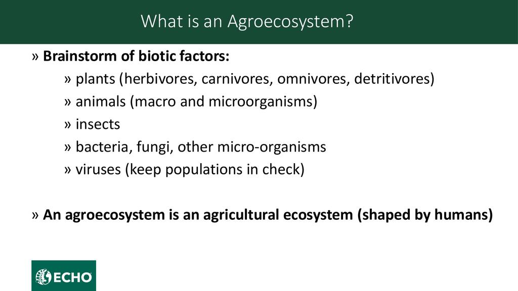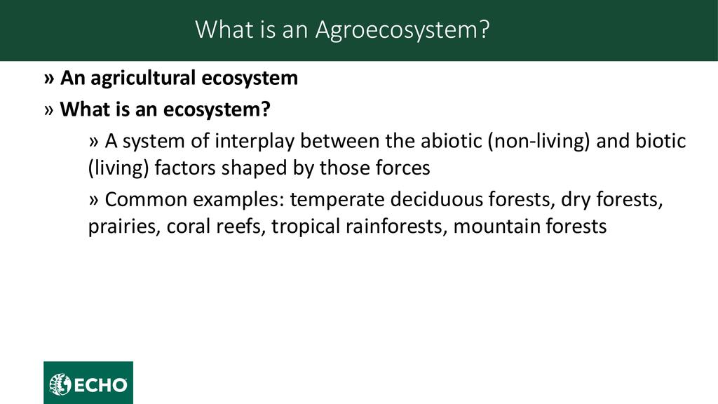 • And, finally, a case study to demonstrate how an agroecosystem is an agricultural ecosystem (shaped by humans)​