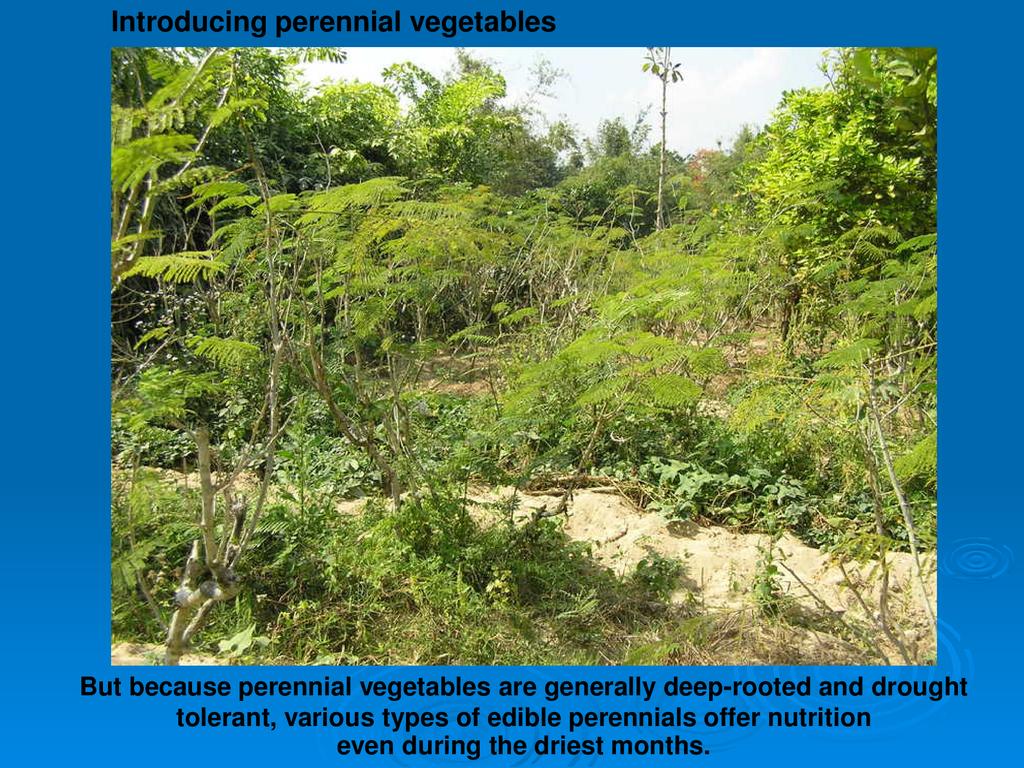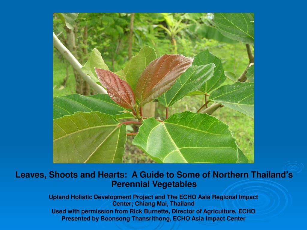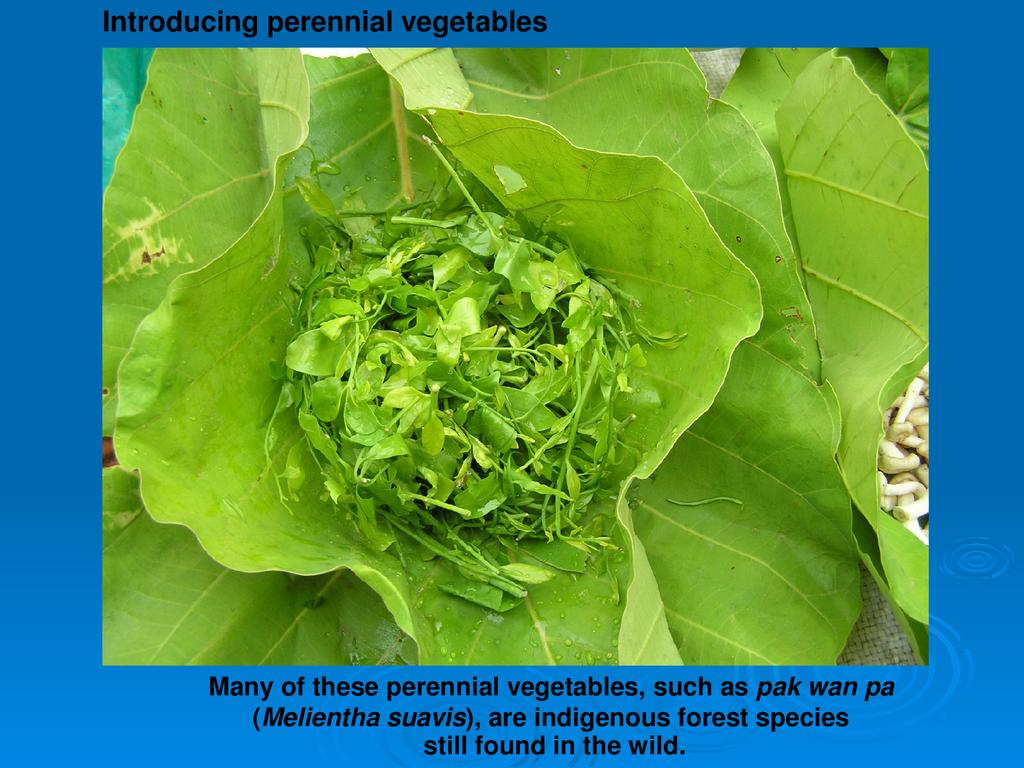 An overview of perennial vegetables in Thailand, why they are important, and how they can be utilized and promoted in community development and agriculture projects.