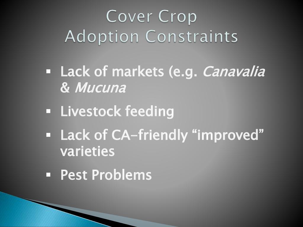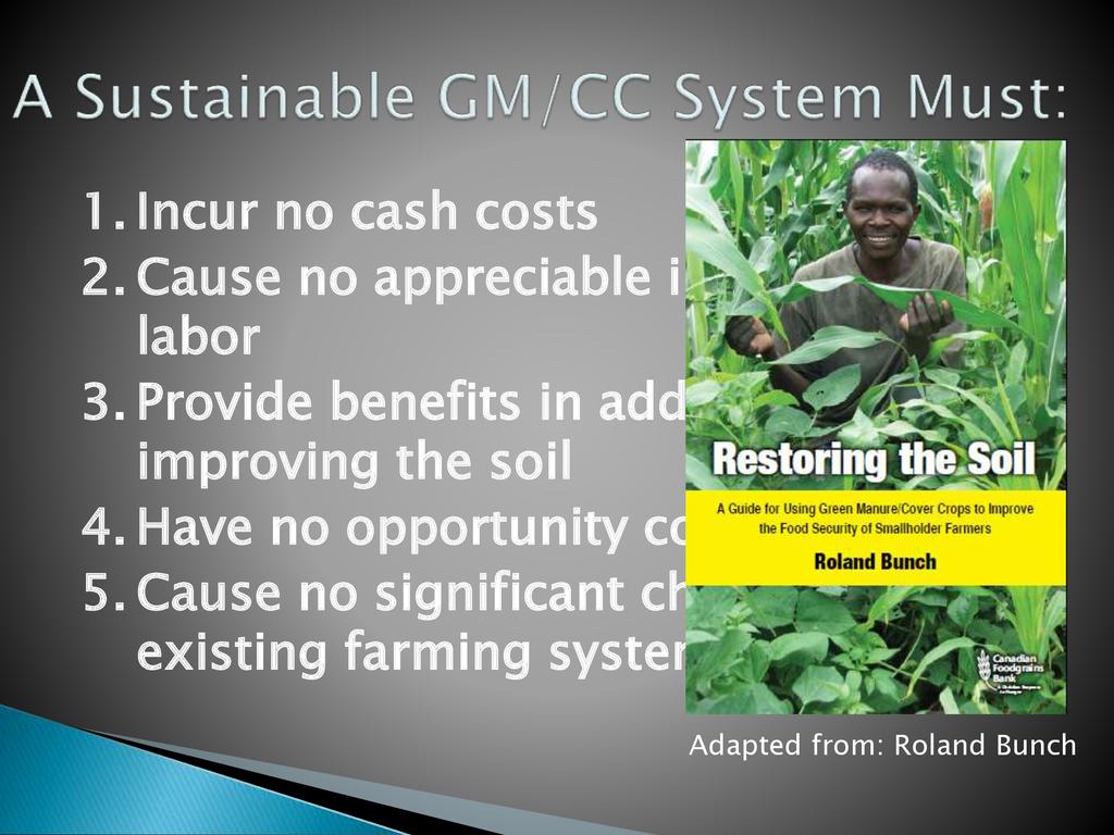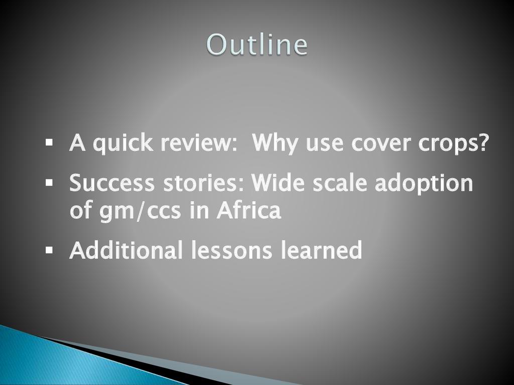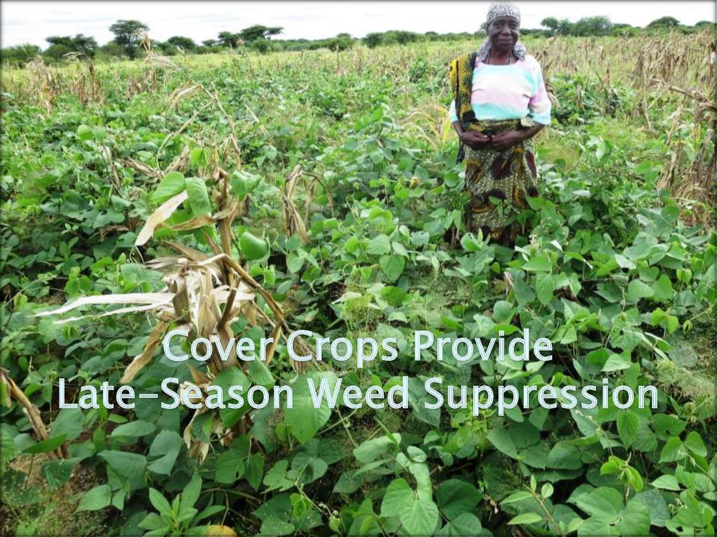 Cover crops play a key role in sustainable agriculture by providing sustainable sources of nutrients as well as protective soil cover to minimize erosion and reduce moisture stresses. Examples of successful cover cropping systems in East Africa will be illustrated as well as constraints and principles for implementing cover crops in other farming systems.