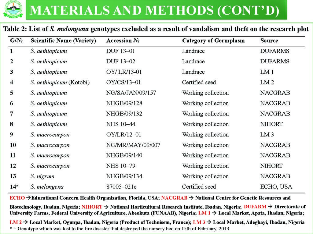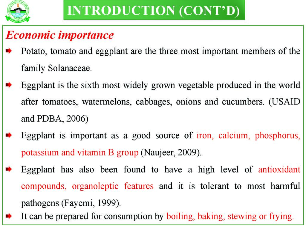 The Potential of Eggplant Varieties from ECHO for Improved Eggplant Production in Nigeria