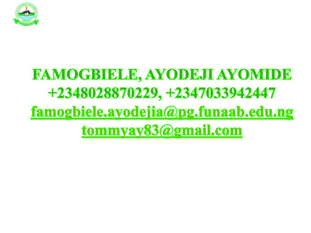 Presented By: Famogbiele, Ayodeji Ayomide - B. Agric. Tech. (CSP); M. Agric. (Plant Breeding)
