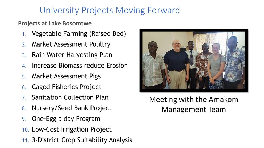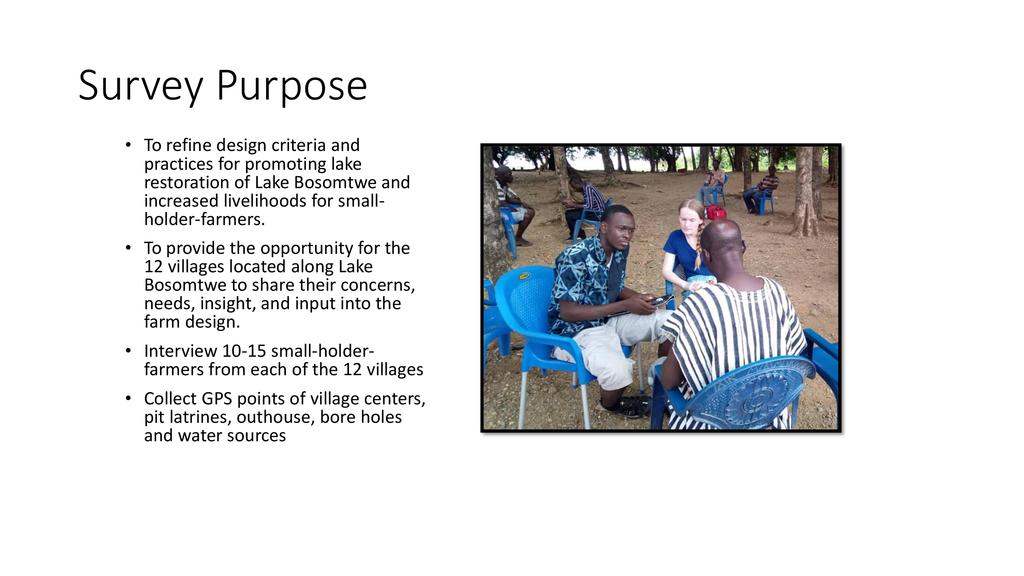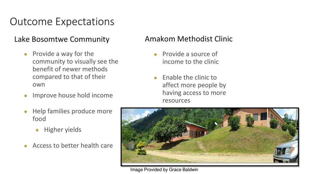 Grace completed her undergraduate Bachelor of Science degree at Purdue University in Agricultural and Biological Engineering with a focus in Environment and Natural Resources Engineering. Grace is now in the second year of her Master of Science degree at Purdue University in Agricultural and Biological Engineering with a focus in Environment and Natural Resources Engineering as well. As part of her thesis she has worked with Global Resource Connections Inc (GRC) and the Methodist Church Ghana to develop the current extension demonstration farm located in the Lake Bosomtwe Impact Crater.