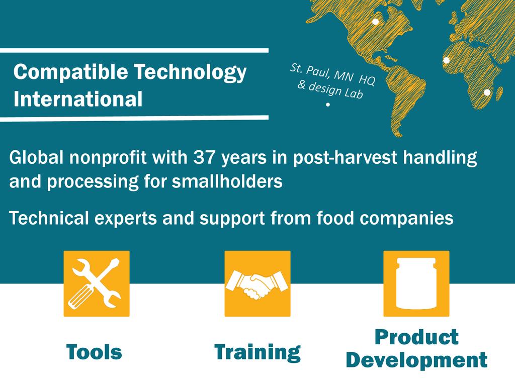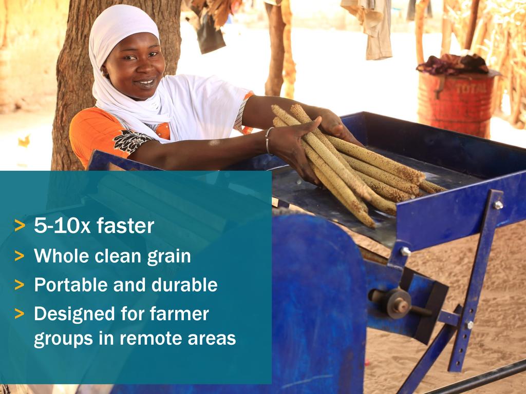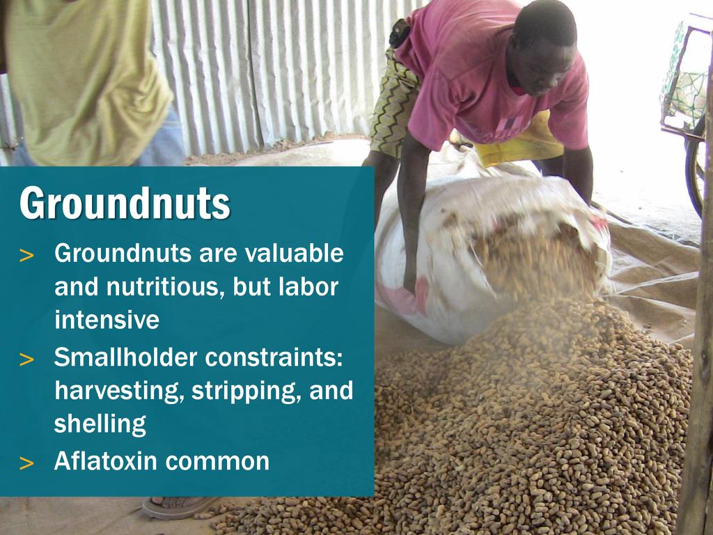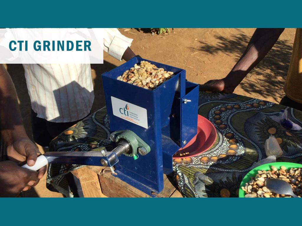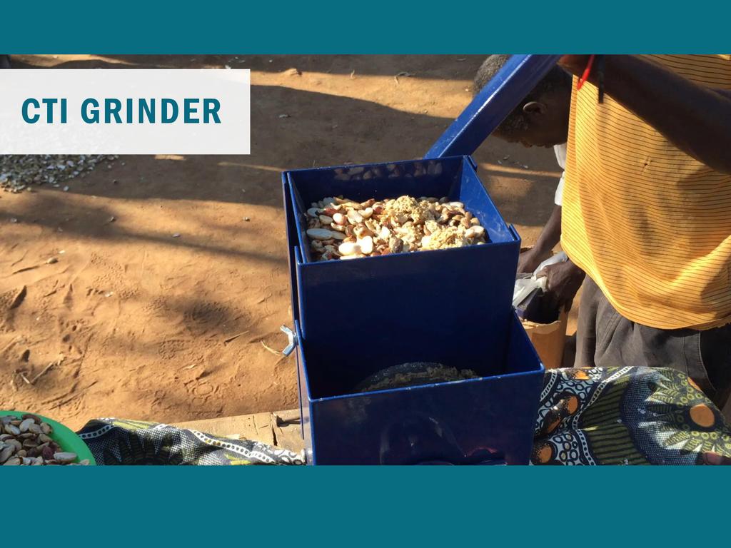 CTI very brief history and video presentation of equipment for small farmer post-harvest processing by grinding dry solids to flour, harvest and processing groundnuts and recovery of clean seed from harvested dry millet.