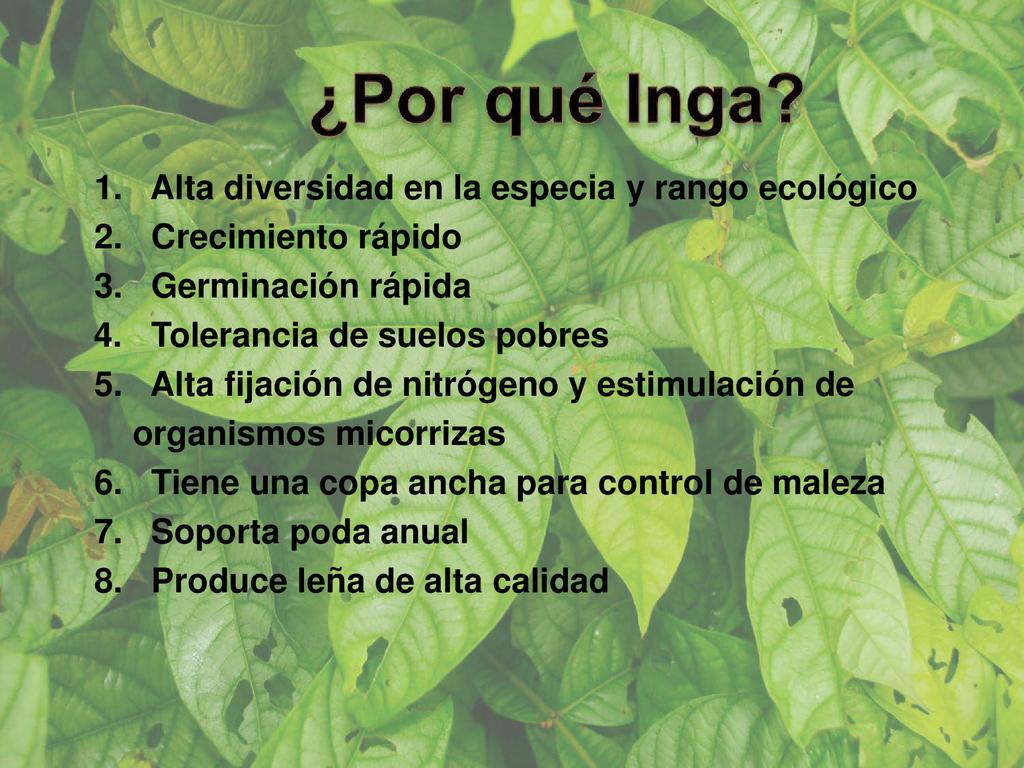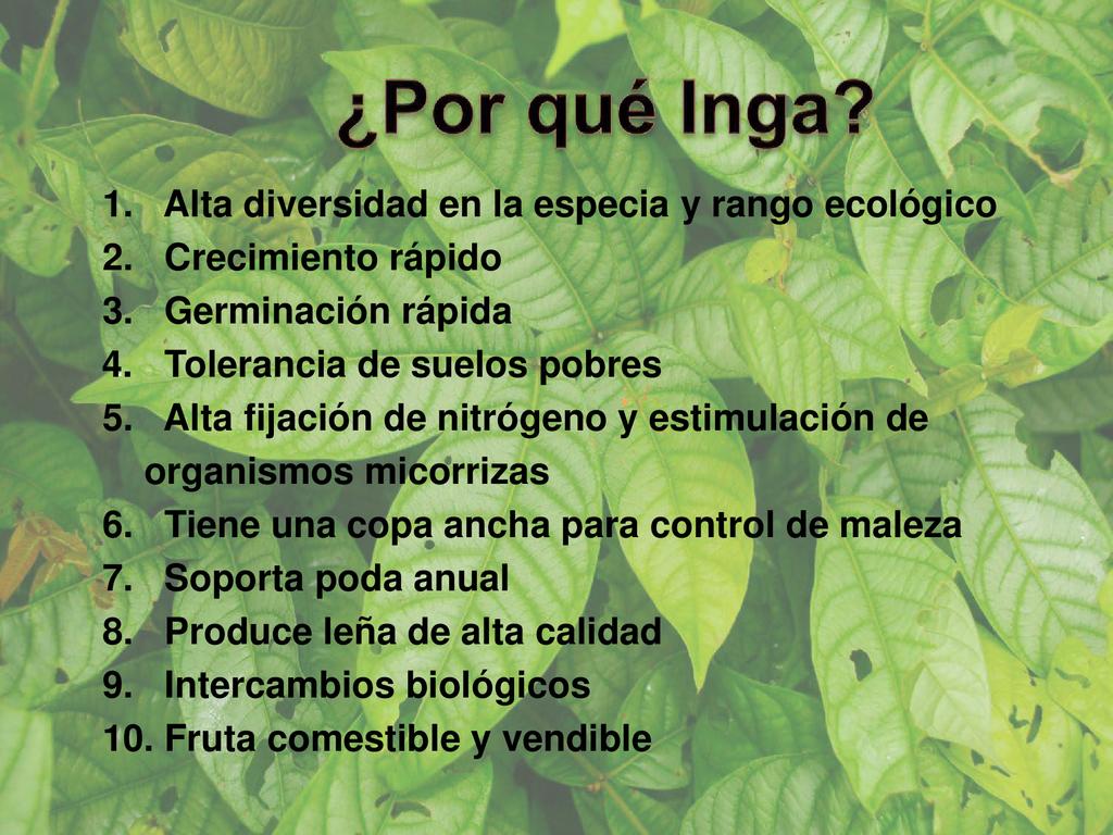 En la zona trópica, calurosa y húmeda, donde la materia orgánica se desintegra rápidamente y constantemente, ¿cuál planta escogería para mayor producción de biomasa y conservación de suelo?  Larry Smoak describe su experiencia después de doce años de trabajo con especias de inga usadas en sistemas de cultivo en callejones en la costa norte de Honduras.