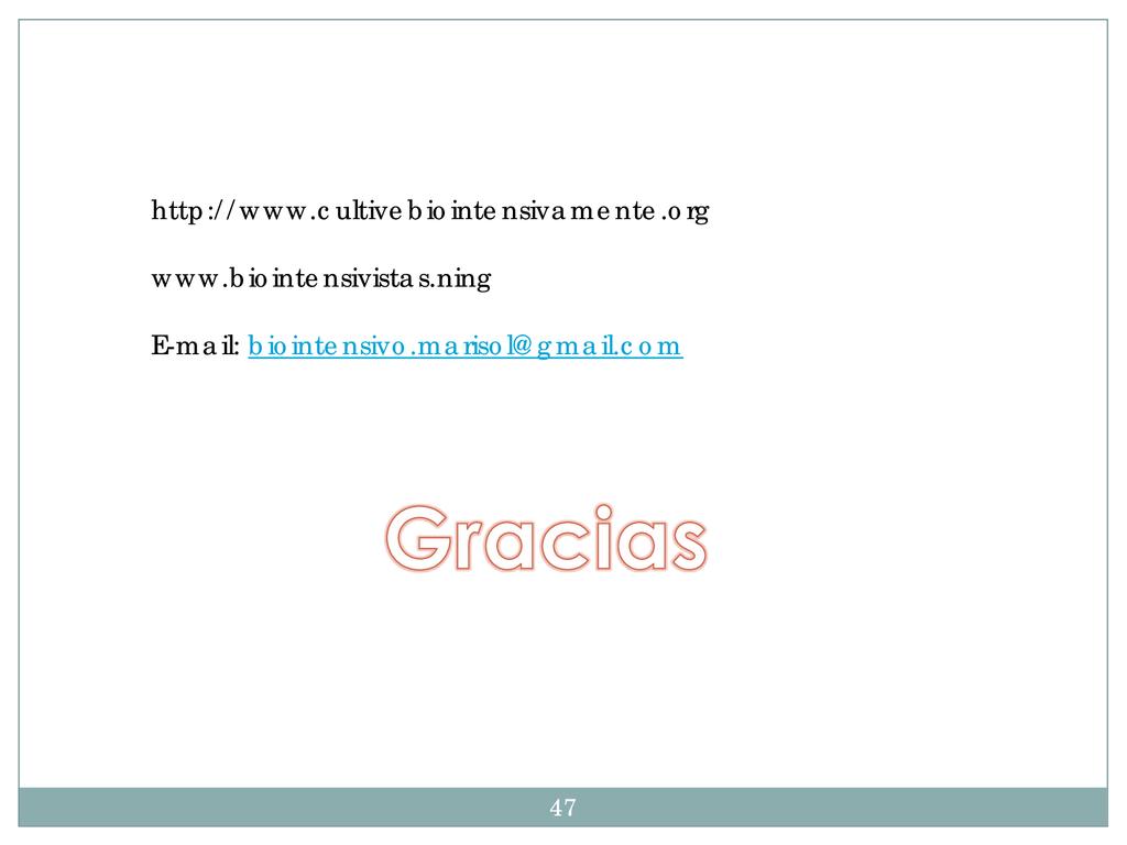 Marisol Tenorio - Soy Mexicana. Estudié Biología, me he dedicado a investigar la calidad de las semillas producidas en pequeña escala. Tengo una Maestria en Ciencias Agronómicas, con el tema la calidad de semillas producidas con dos métodos con el Metodo Biointensivo de Cultivo de Alimentos.  Soy Master level Teacher in GROW BIOINTENIVE, y tengo experiencia impartiendo capacitaciones en América Latina, Estados Unidos e Italia. Tengo un Huerto con en el que trabajo con CULTIVE BIOINTENSIVAMENTE, produzco semilla en pequeña escala.