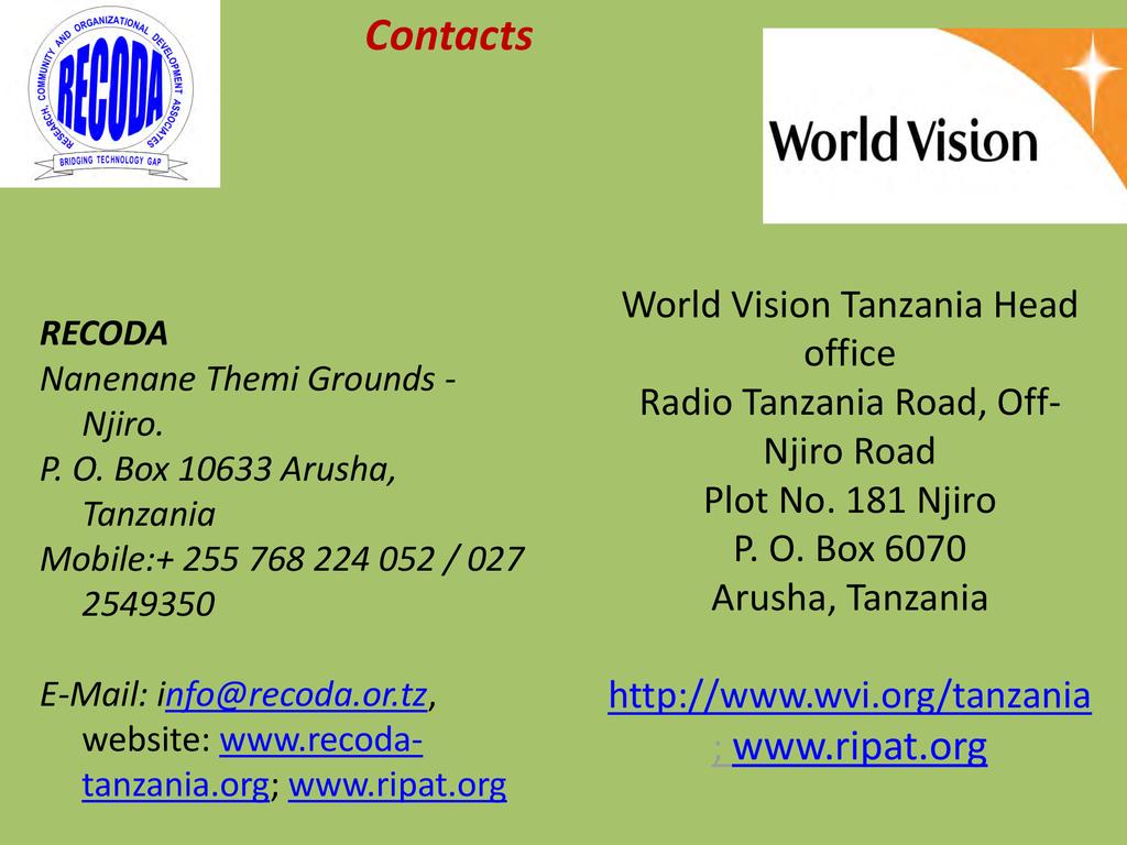 Presented By: Dominic Ringo, RECODA Tanzania