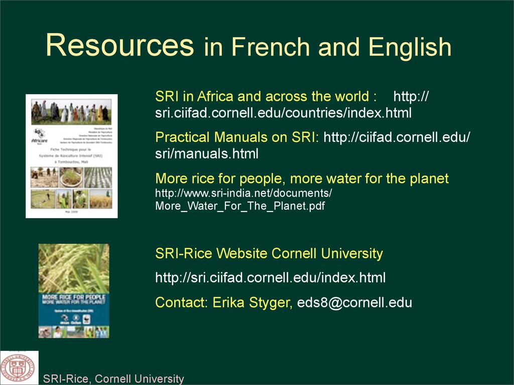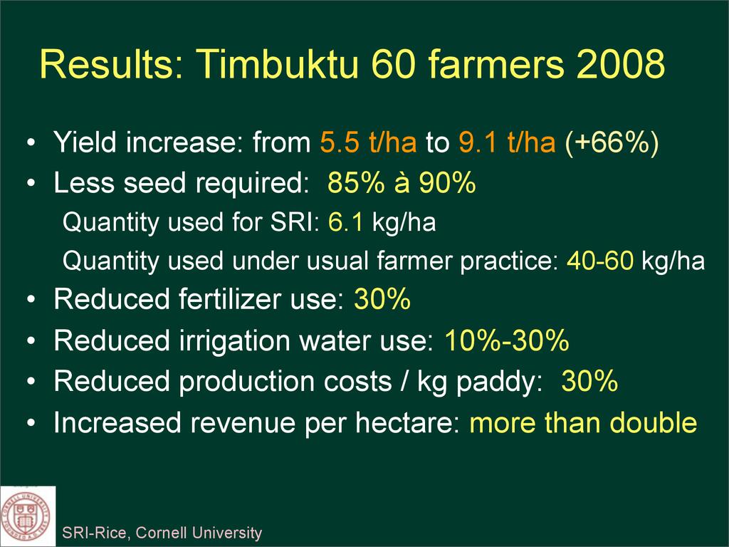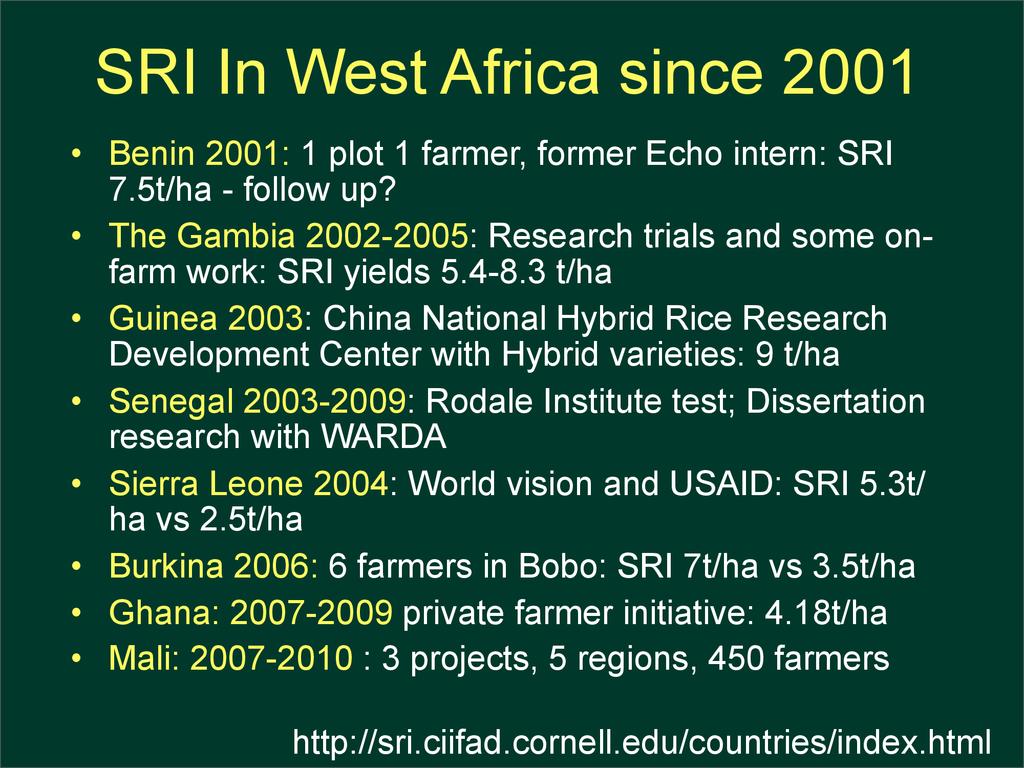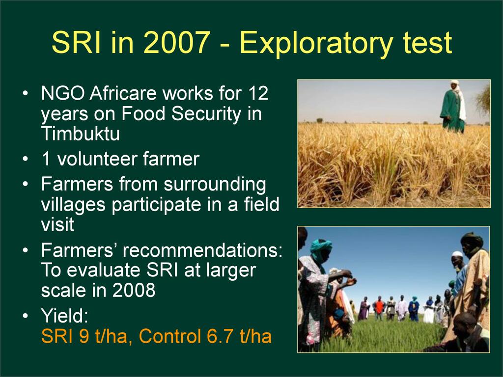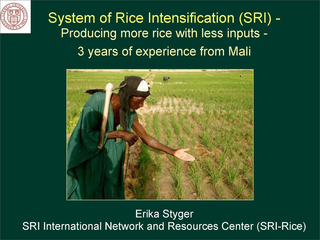 您正在分享: System of Rice Intensification (SRI) - Producing more rice with less inputs - 3 years of experience from Mali
